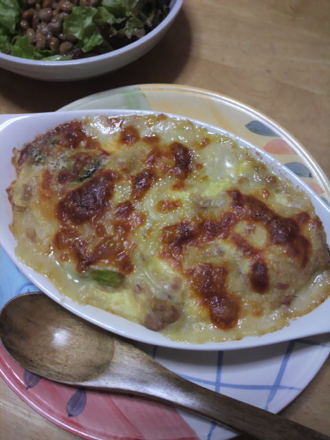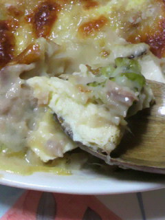 ■豆腐とツナの豆乳グラタン、豆乳でホワイトソースを作りました