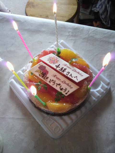■仕事場で誕生日ケーキを買ってもらいました!ありがたや~。同じ5月生まれで「水曜どうでしょう」やたら好きな渡辺さんと一緒のお祝い。